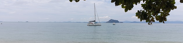 Klären wir später. Wir haben die Nase voll und wollen dort weg. Checken Wetter und bei Ko Yao Yai sieht es besser aus, also dorthin. Auf dem Weg dahin im Regen kurz vor Ankunft extremer Regen, man sieht nichts mehr, also im Kreis fahren, bis es nachlässt. Wahnsinn, gerade mal der zweite Tag, ein paar Stunden auf dem Boot und schon mehr Stress gehabt, als in anderen Turns in zehn Tagen.